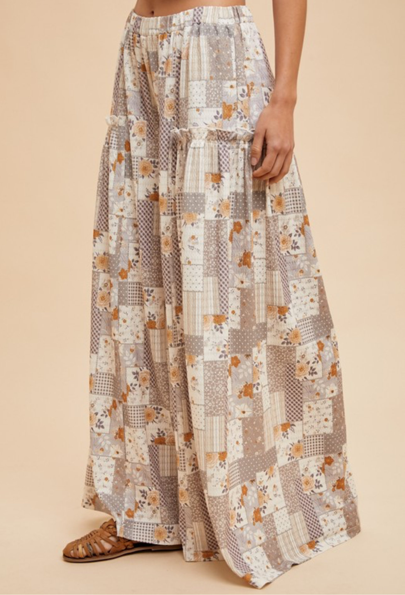 Experience comfort and style this fall with our Falling For Floral wide legΒ pants. They feature a textured knit and a unique patchwork print in the color ash violet.Β