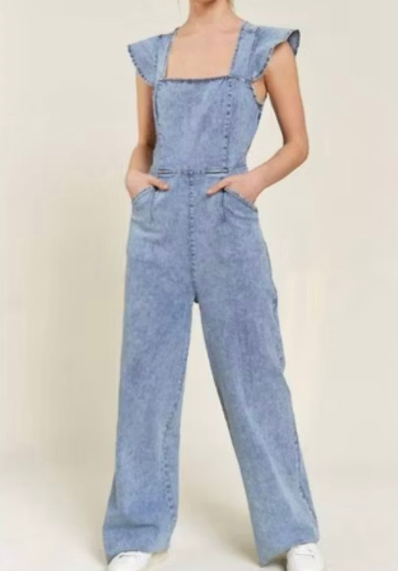 Discover our new Southern Sweetheart Denim Jumpsuit, which features a snug smocked back and an adorable peek-a-boo detail. With its wide leg cut, this jumpsuit strikes the perfect balance between stylish and relaxed, while the soft denim fabric guarantees comfort throughout the day. Pair it with sneakers for a laid-back vibe or elevate your look with boots for a more polished ensemble, making it a versatile choice for both day and night.