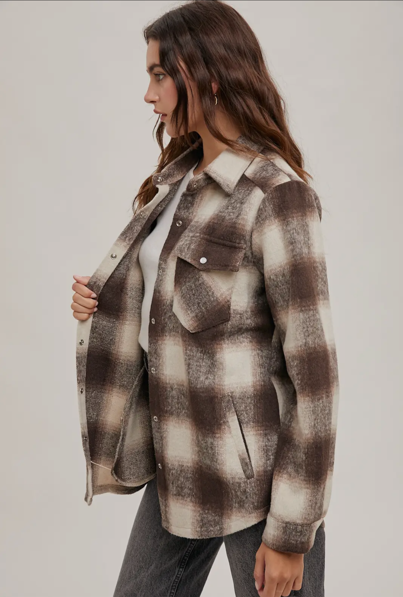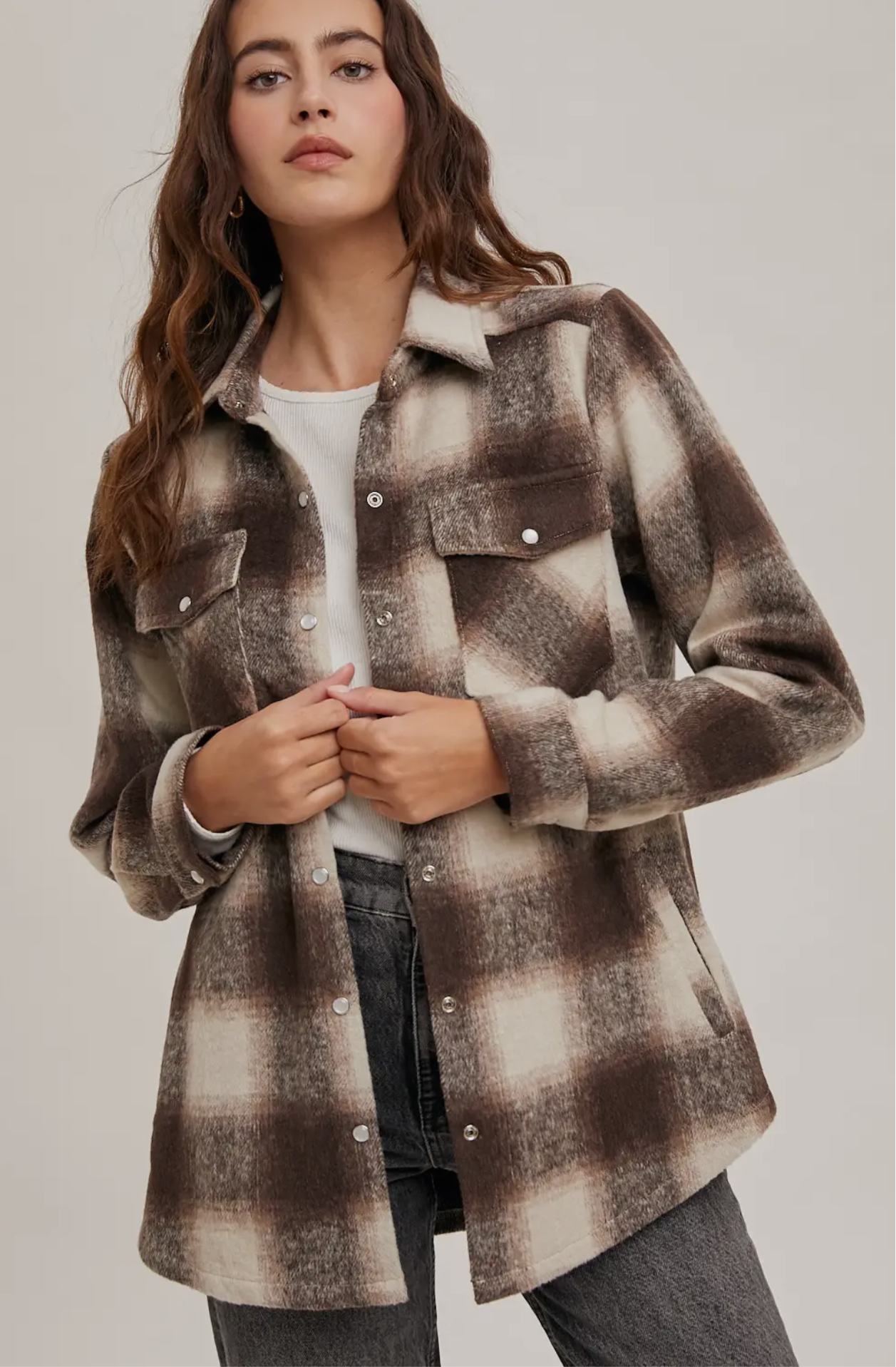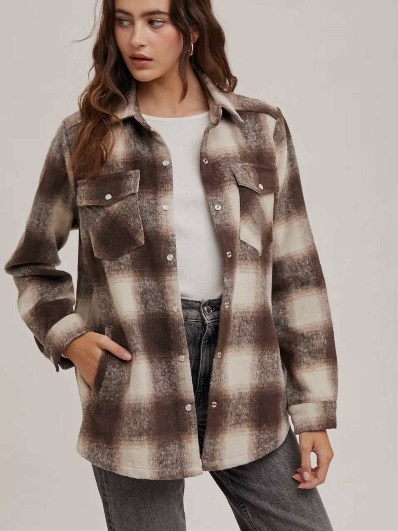 This versatile piece seamlessly merges the comfort of a shirt with the warmth of a jacket, making it ideal for layering during cooler weather. The flannel fabric provides a cozy feel, while the button down front and pockets enhance its practicality and functionality.