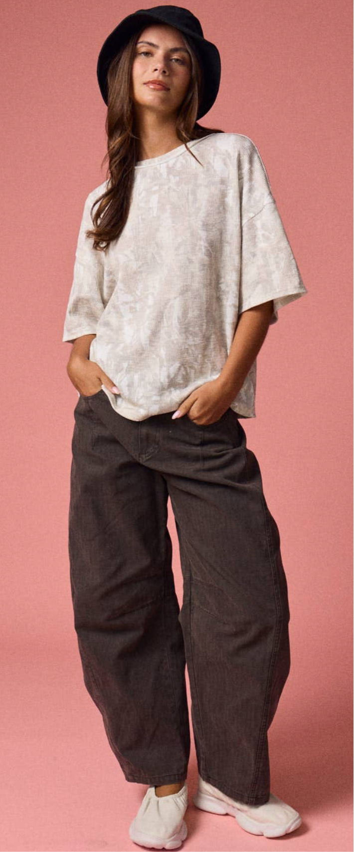 Effortless style meets everyday comfort in this oversized ribbedΒ tee.Β Crafted from a soft, textured fabric it drapes beautifully and the relaxed silhouette complements every body type. Ideal for layering or wearing on its own, this versatile piece transitions smoothly from casual coffee outings to weekend escapades.